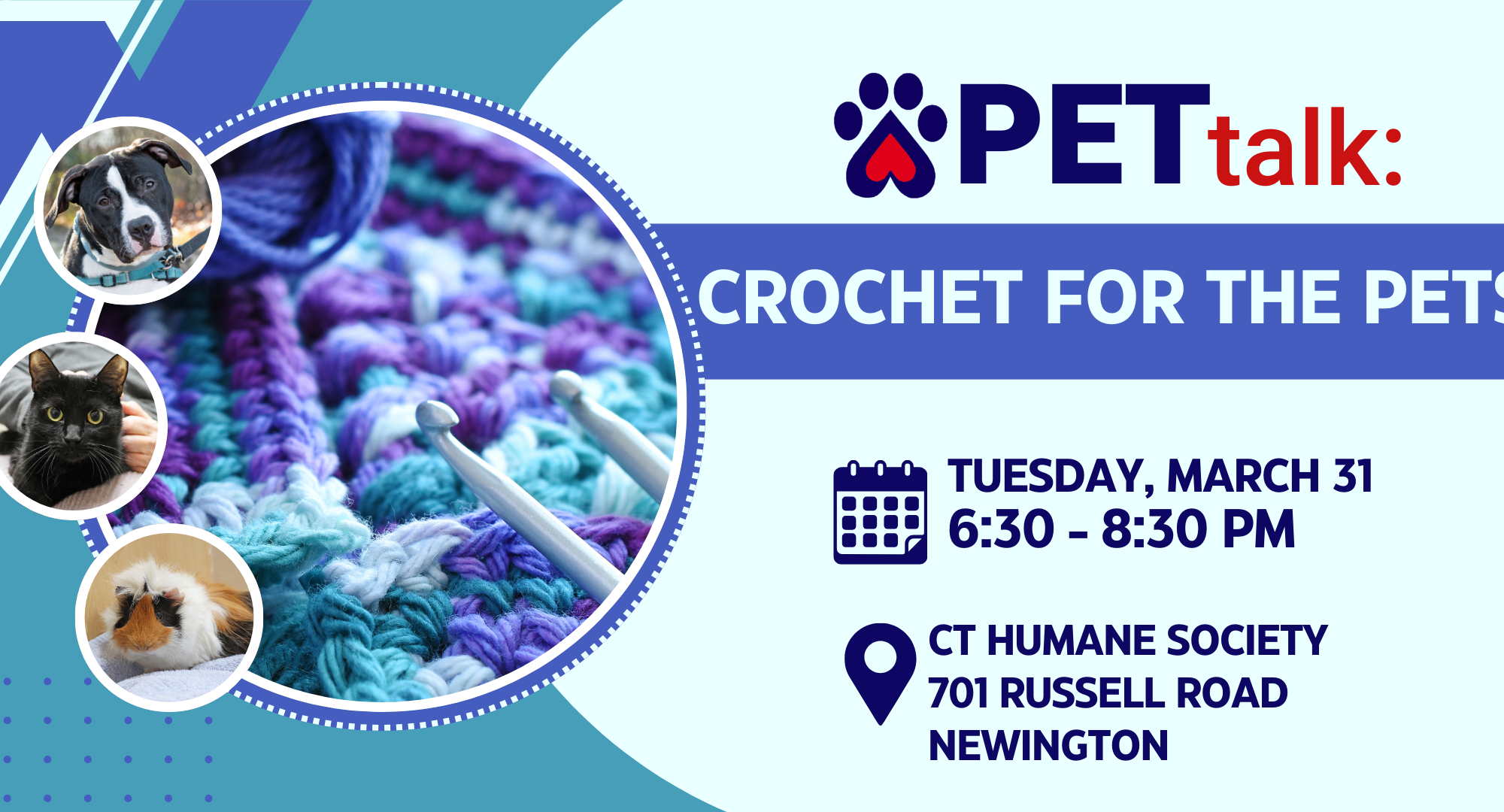 Join the Connecticut Humane Society at the Newington location for a limited-run program, “Reading to Pets”. Designed for children ages 6-18, the session will help sharpen your child’s reading skills while allowing them to spend quality time with a pet in care at the shelter.